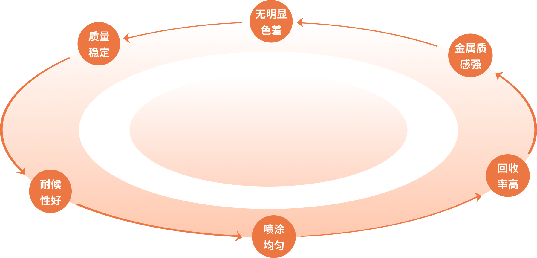 “漆改粉”特色品種,顏色穩(wěn)定金屬效果強,對金屬基材附著力好;金屬粉末涂料采用德國進口綁定機生產(chǎn),批次色差穩(wěn)定。避免了干混金屬粉積槍頭現(xiàn)象,新粉回收粉同樣可應用;金屬效果顏料含量高,立體幻彩閃爍效果; ...